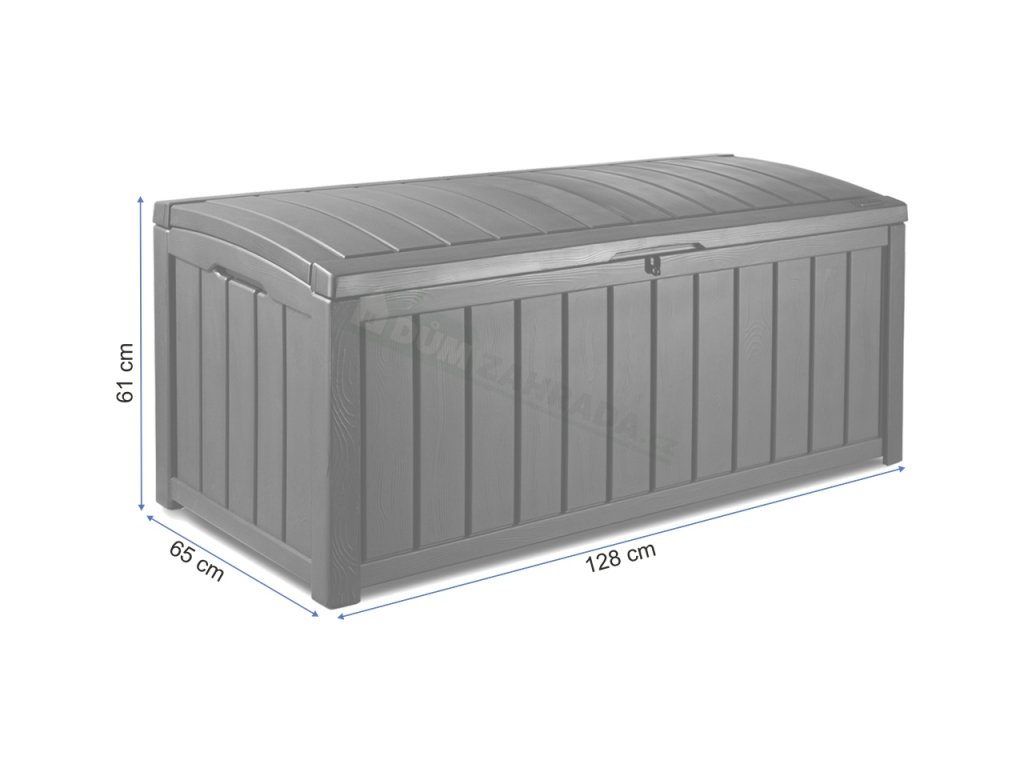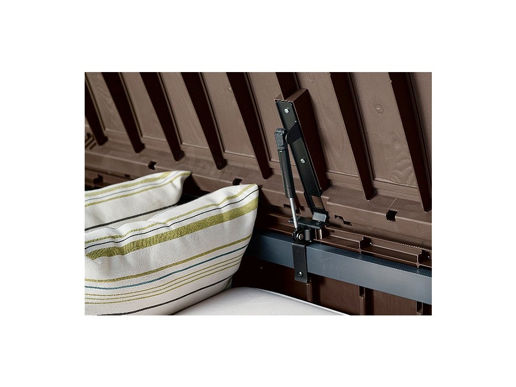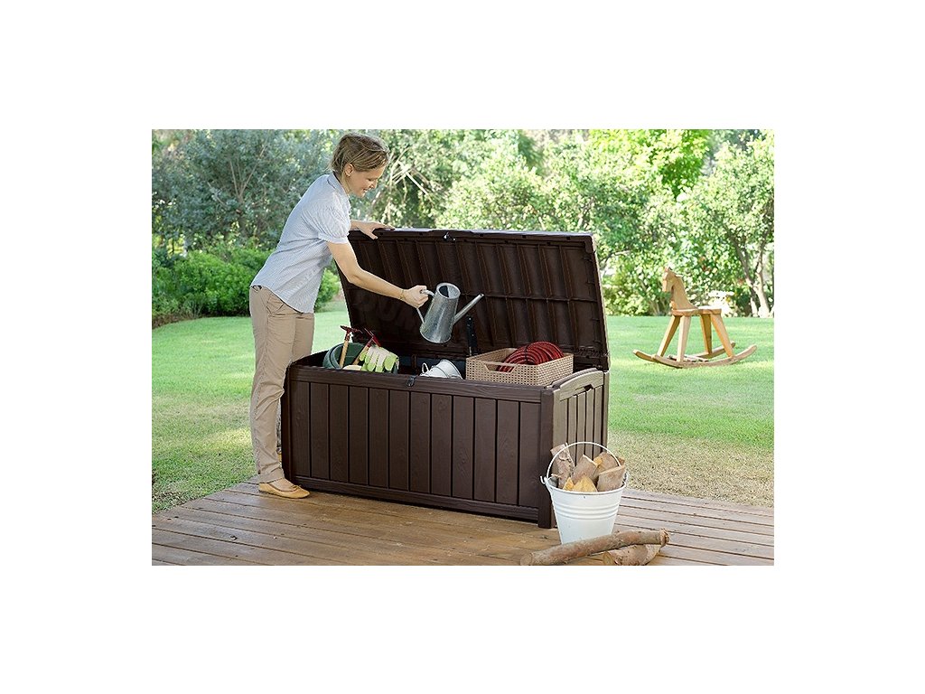 Představujeme Vám prostorný zahradní box Glenwood renomované firmy KETER. Box s možností sezení v hnědém provedení, nabízí objem až 390l. Ideální pro uskladnění polstrů pro zahradní nábytek, nářadí, hraček a mnoha dalších potřeb. Box Keter Glenwood je vyroben z kvalitního plastu s povrchem imitujícím dřevo tzv. Wood Efekt