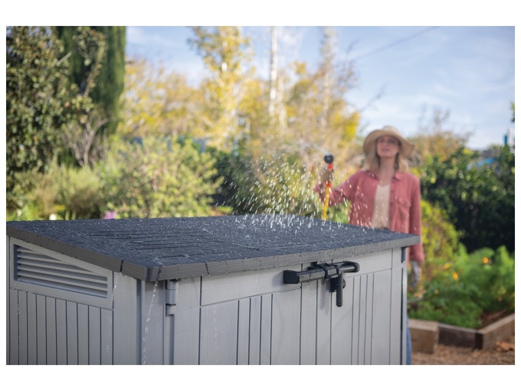 Vylepšená úložná skříň STORE-IT-OUT Midi charakterstická svou odolnou konstrukcí a estetickým vzhledem. Skříň Keter Midi Prime je výborným řešením problému, kam ukládat drobné nářadí, zahradní doplňky a jiné předměty. Univerzální barvy, jednoduché a funkční tvary a povrch imitující přírodní dřevo se dokonale hodí do jakéhokoli prostoru. Úložný prostor chrání předměty před povětrnostními vlivy a nečistotami, a jeho plastový povrch zaručuje dlouhou životnost. Otevírá se shora nebo zepředu pro pohodlný přístup. Dveře i víko jsou uzamykatelné pro větší bezpečí předmětů uvnitř, které díky vestavěnému systému větrání nebudou trouchnivět. Bezúdržbová - nerezne, neloupe se, odolává UV záření.