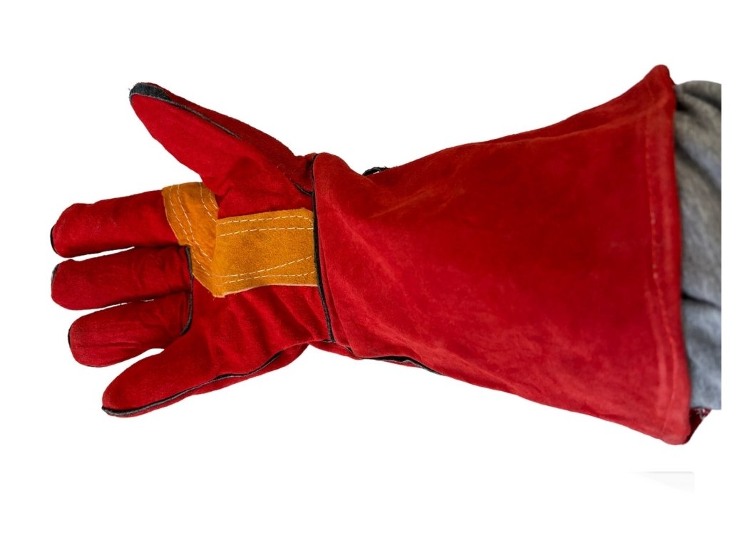 Rukavice jsou vyrobeny z pevné a odolné kůže, která zajišťuje dlouhou životnost a vysokou tepelnou ochranu. Prodloužený střih chrání nejen dlaně, ale i zápěstí a část předloktí. Díky výraznému červenému provedení jsou nejen praktické, ale i dobře viditelné a stylové.