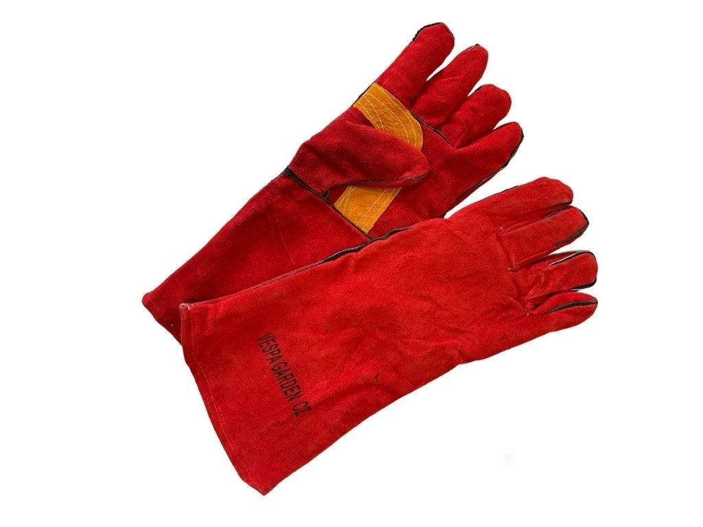 Rukavice jsou vyrobeny z pevné a odolné kůže, která zajišťuje dlouhou životnost a vysokou tepelnou ochranu. Prodloužený střih chrání nejen dlaně, ale i zápěstí a část předloktí. Díky výraznému červenému provedení jsou nejen praktické, ale i dobře viditelné a stylové.