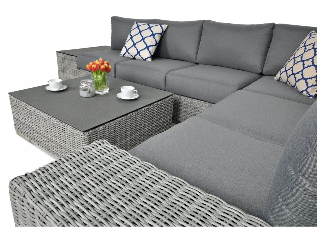 Rohový set AVOCADO Stone Grey dokonale spojuje styl s praktičností. Ratanový set Avocado se skládá z velké rohové části se čtyřmi moduly a stolu s deskou imitující kámen. Tento zahradní nábytek kombinuje to nejlepší z designu a praktických řešení. Rohová souprava na první pohled vyniká svým originálním vzhledem. Jednoduchá, moderní forma, široké područky a přírodně šedá barva dokonale ladí s jakýmkoli typem zahrady nebo interiéru. Rohový set Avocado z technoratanu skvěle poslouží i jako nábytek do bytu.