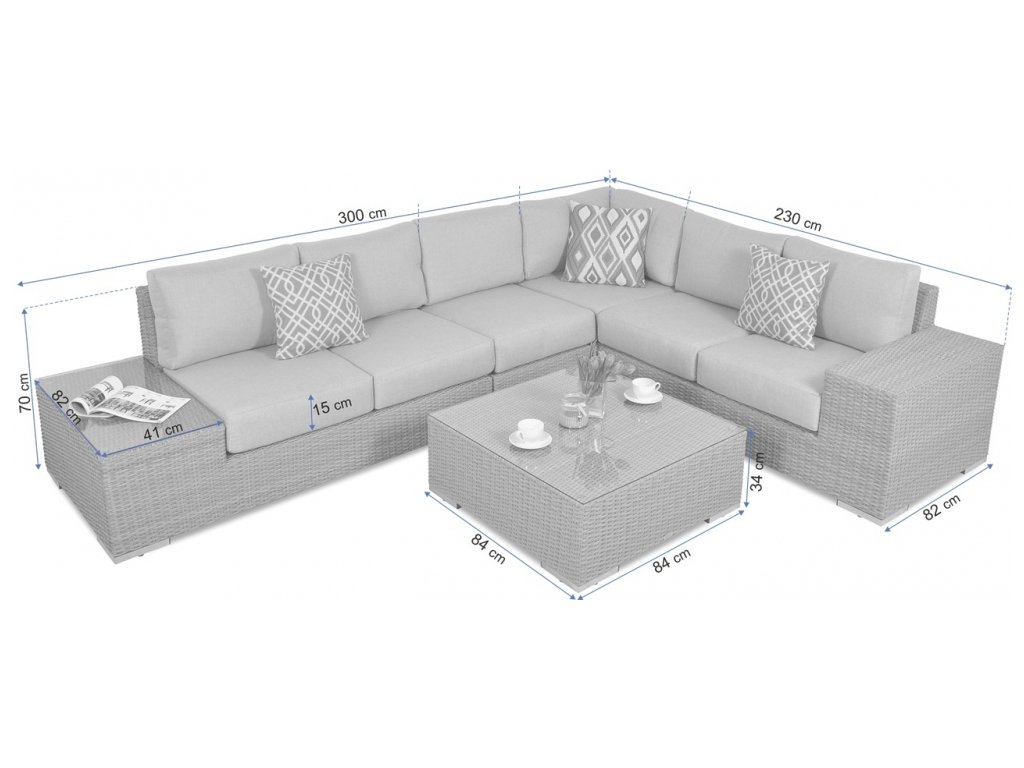 | Rozměry celého setu: | délka: 300 cm / šířka: 230 cm / výška: 70 cm |