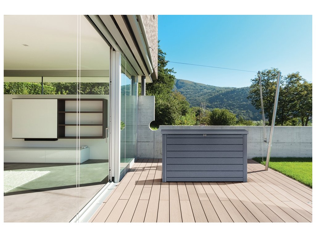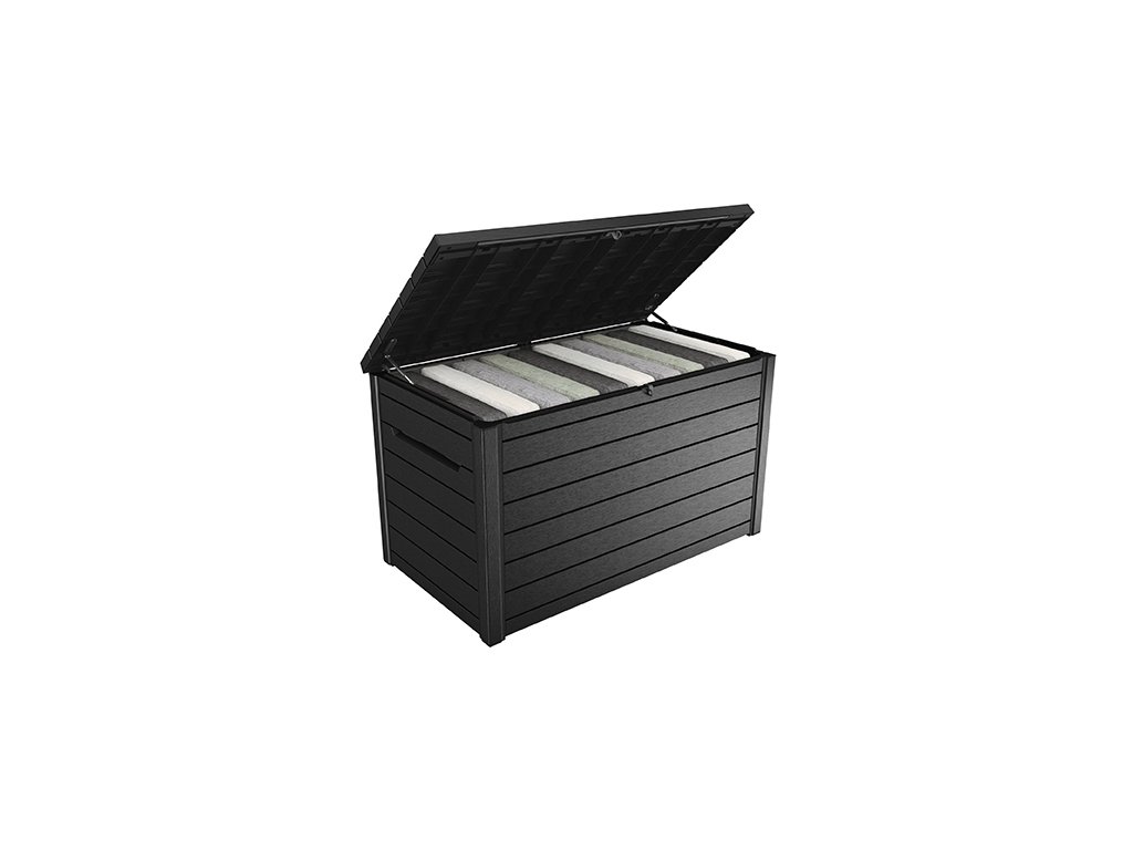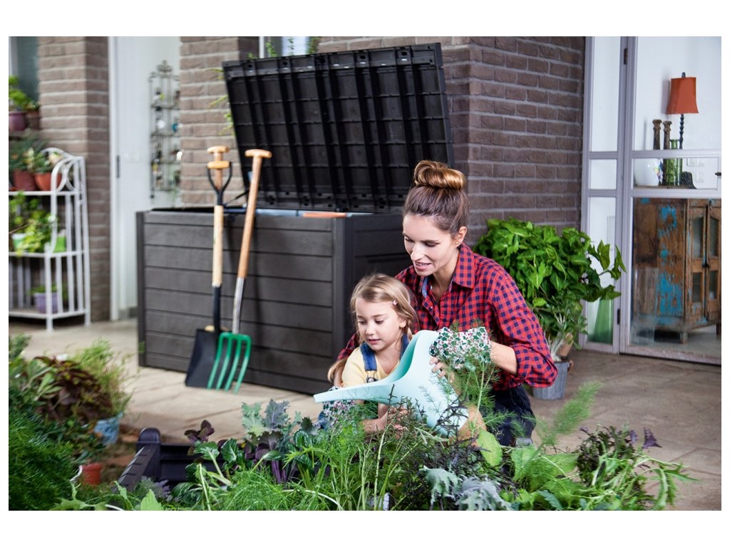 Hlavní předností tohoto zahradního boxu je jeho velká kapacita a snadná montáž. Díky těmto přednostem najdou v prakticky uspořádaném prostoru své místo předměty jako zahradní polštáře, deka nebo potřebné zahradní nářadí. A navíc ho můžete využívat jako lavici na sezení.