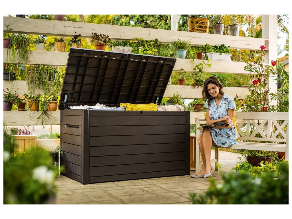 Hlavní předností tohoto zahradního boxu je jeho velká kapacita a snadná montáž. Díky těmto přednostem najdou v prakticky uspořádaném prostoru své místo předměty jako zahradní polštáře, deka nebo potřebné zahradní nářadí. A navíc ho můžete využívat jako lavici na sezení.