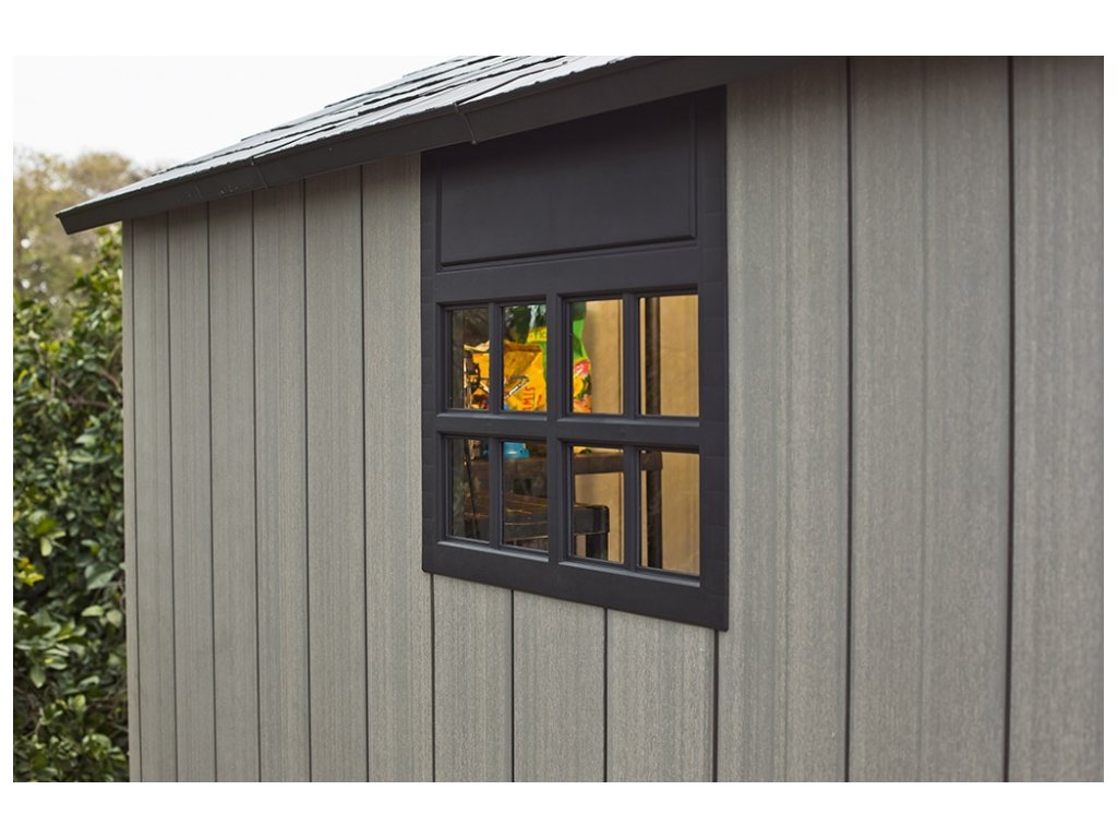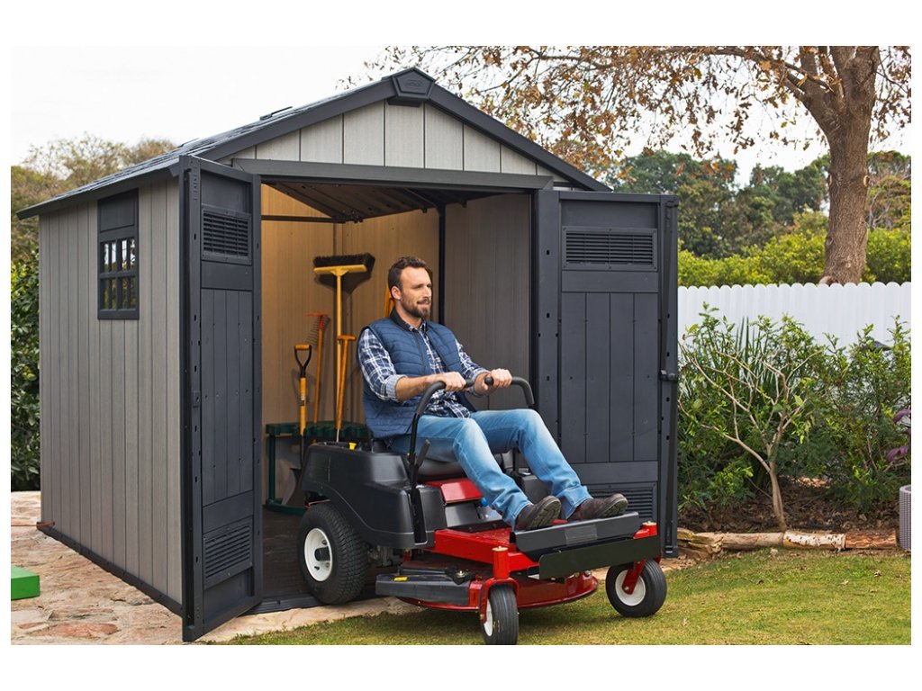 Další výhodou je to, že domek lze celý přetřít na jakoukoliv jinou barvu dle vašeho výběru. Uvnitř je dostatek prostoru pro velké zahradní nářadí, jako jsou sekačky na trávu, vybavení pro grilování, zahradní nábytek a řadu dalších zahradních doplňků. Ventilátor zajišťuje neustálý přívod čerstvého vzduchu a nářadí tak v domku zbytečně nevlhne. Domek lze uzamknout a vaše věci tak budou v bezpečí.