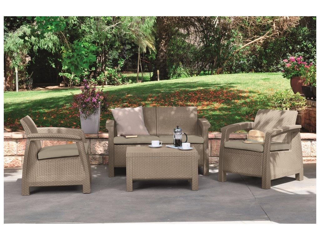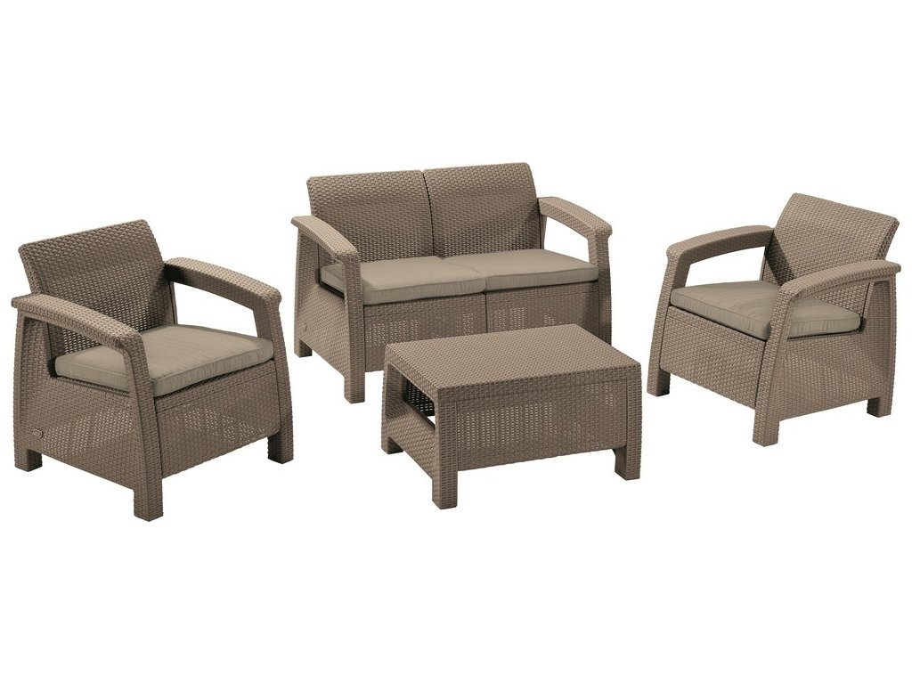 Zahradní souprava KETER Corfu II SET v barvě cappuccino se vzhledem imitujícím strukturu přírodní ratanové vazby se bude vyjímat na každé zahradě, terase či u bazénu. Narozdíl od přírodního ratanu nebude set Corfu II ztrácet na kvalitě svého vzhledu z důvodu nepříznivého počasí - je vyrobený z kvalitního plastu, který odolává povětrnostním vlivům.