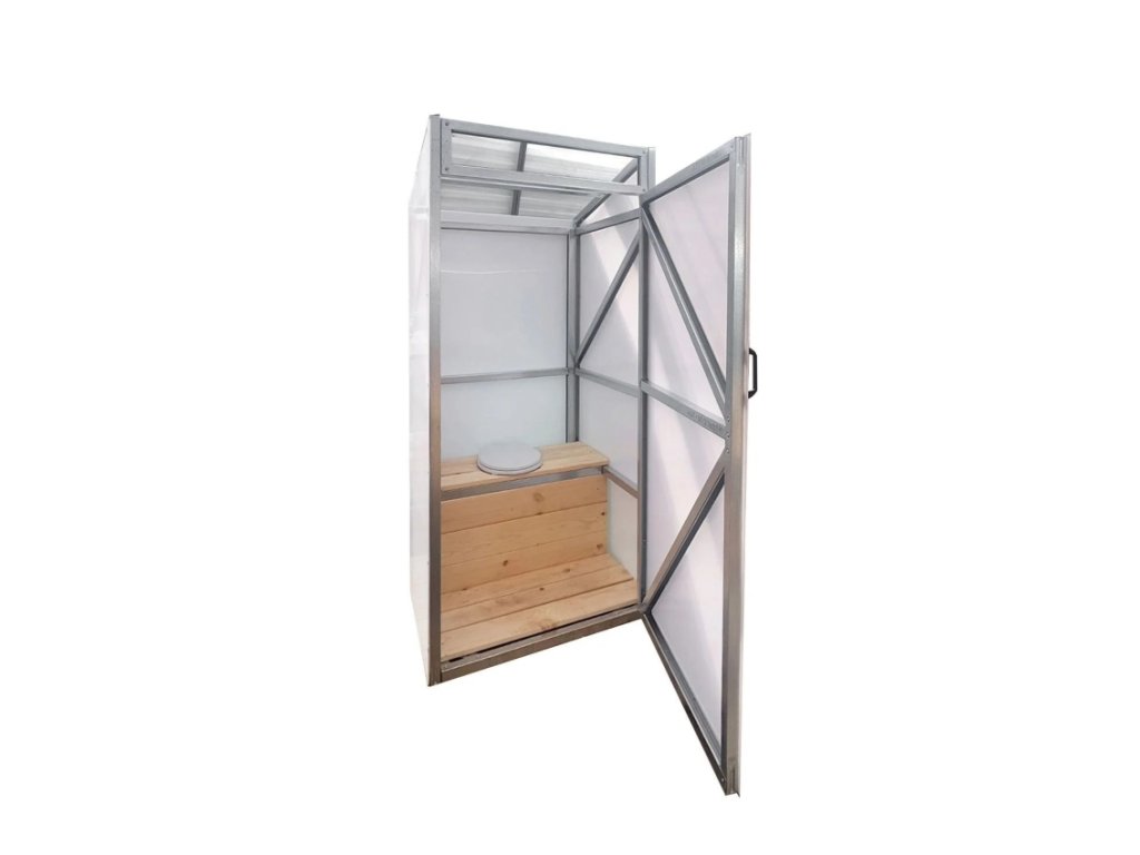 Zahradní kabinková toaleta s dřevěným posedem a neprůhledným polykarbonátem