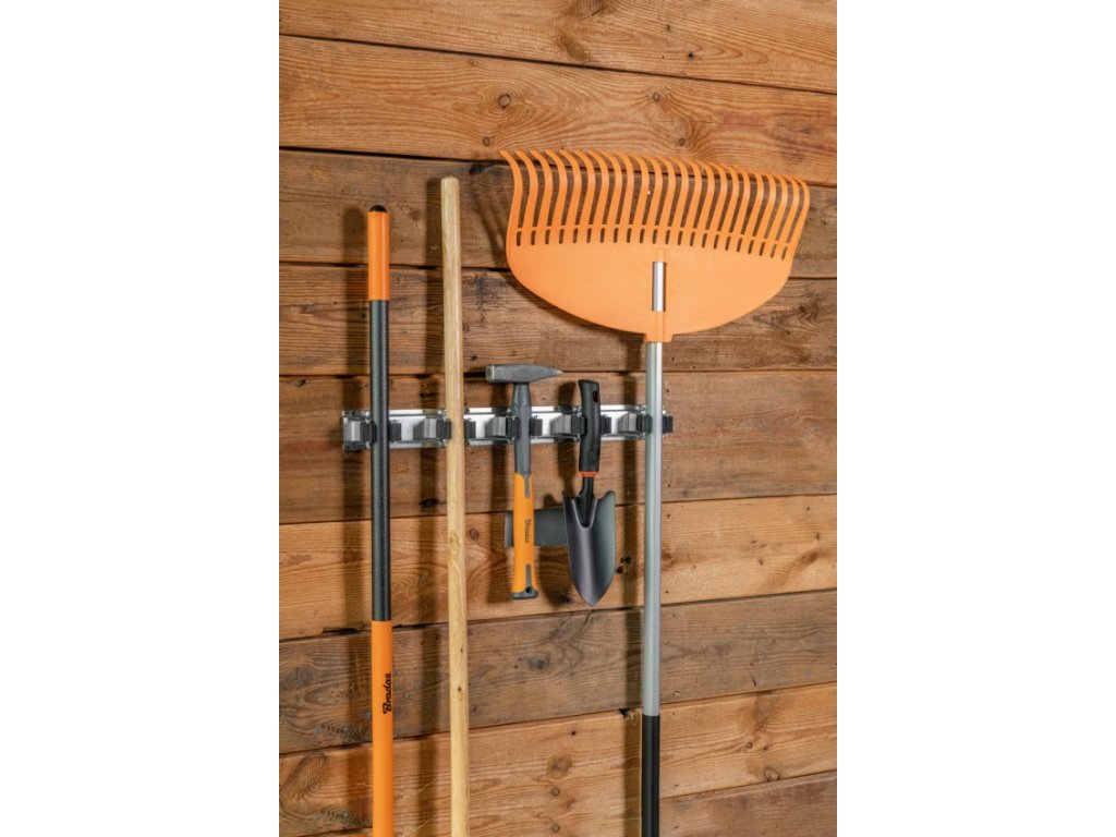 Díky kompaktním rozměrům a snadné montáži je tento držák ideální pro každodenní použití. Perfektně se hodí pro zavěšení smetáků, hrábí, kladiv a dalšího ručního nářadí.